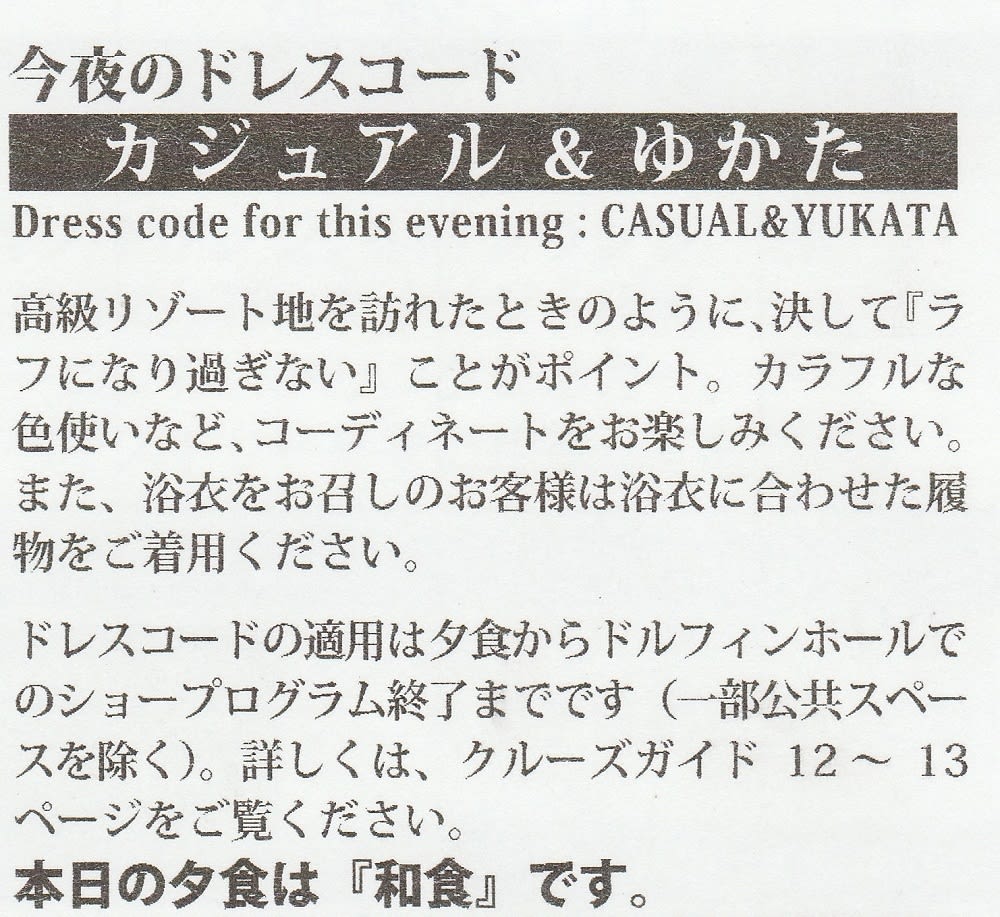 その日のドレスコードは、船内新聞で確認します。
