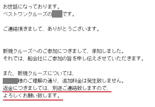 代替クルーズに申込むことにして、その旨メールで返信しました。
