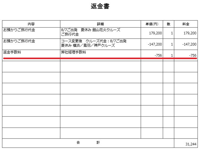 クルーズ旅程が変更して旅行代金が変わった時、差額返金はどのように行われるのか?です。