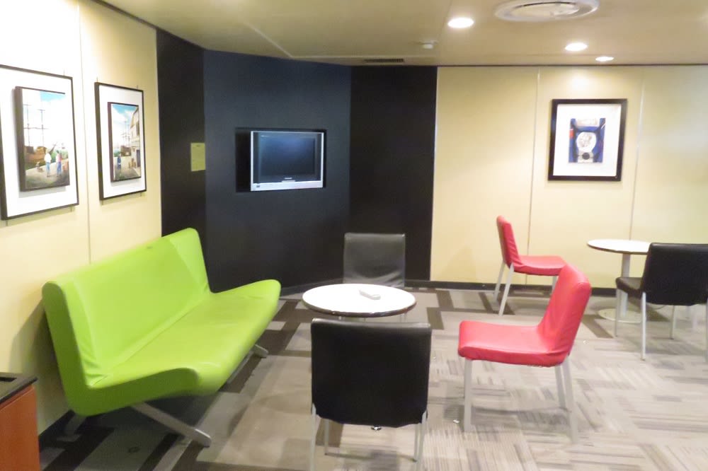 6デッキエントランスホール脇にある休憩スペースではテレビが見れます。