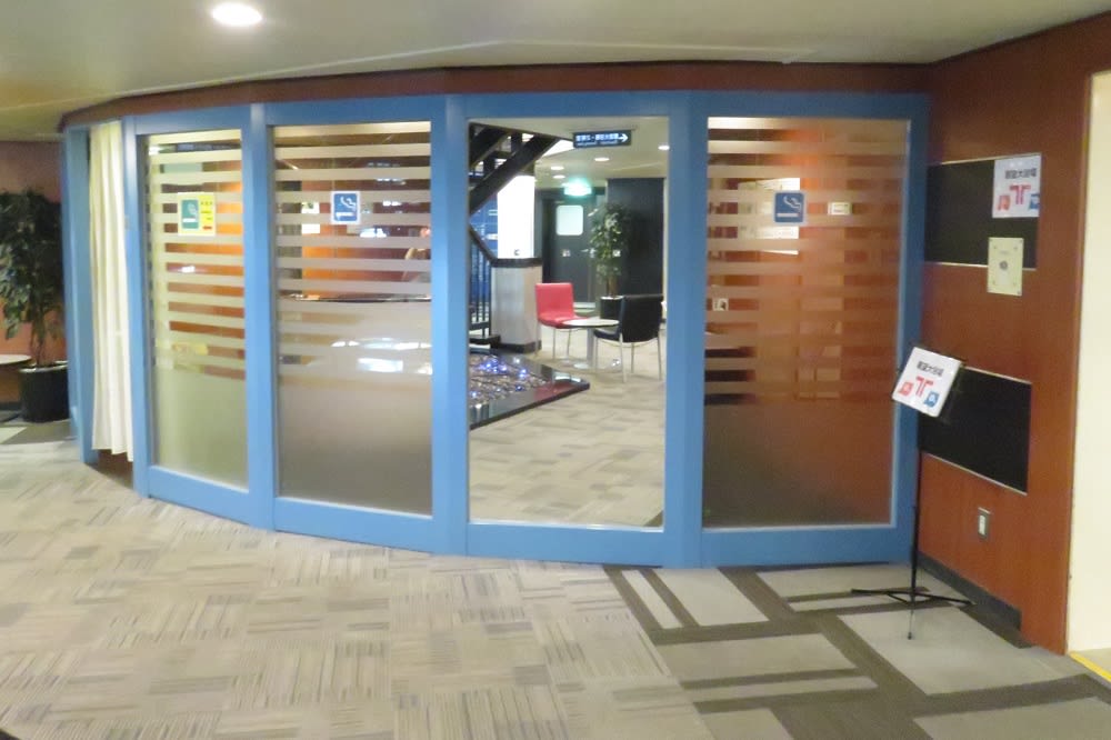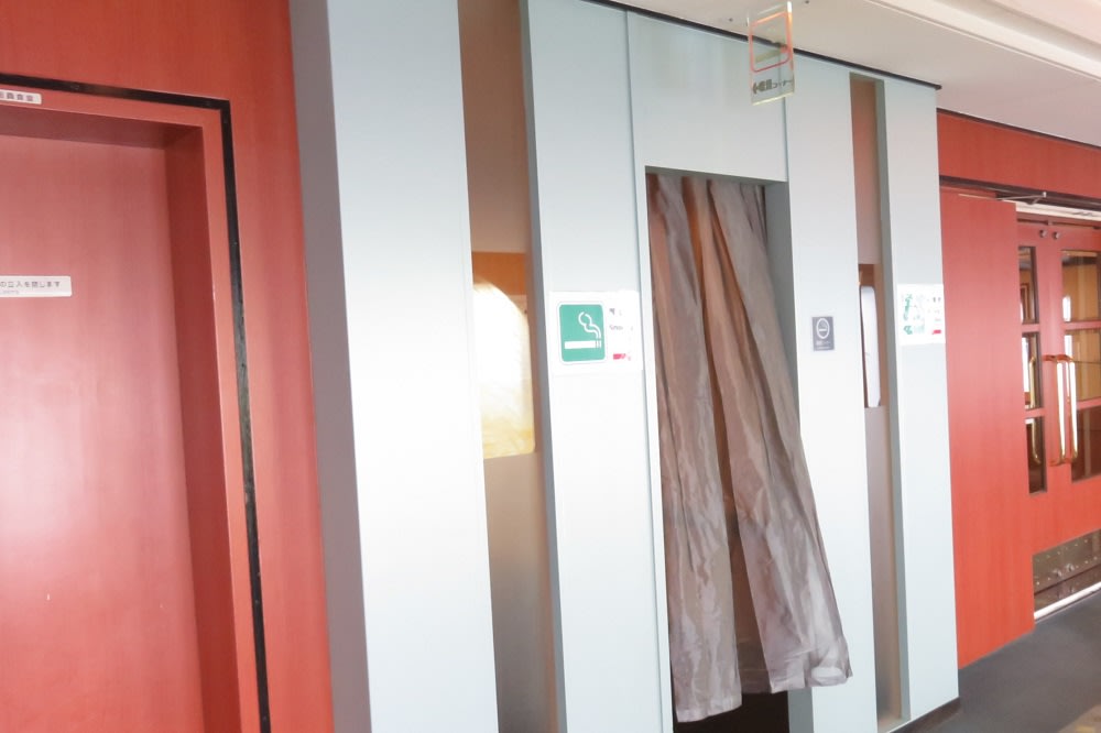 6デッキエントランスホール隅にある喫煙所がタバコを吸っても良い場所になっています。