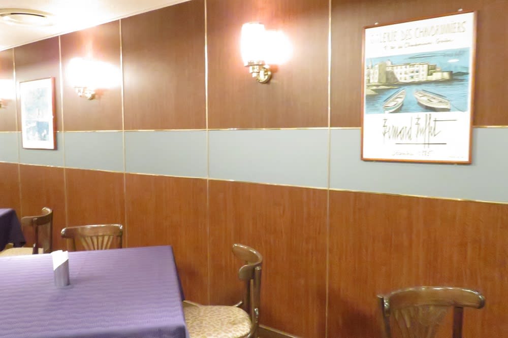 壁には船や港のイラストとレトロなライトが点っています。