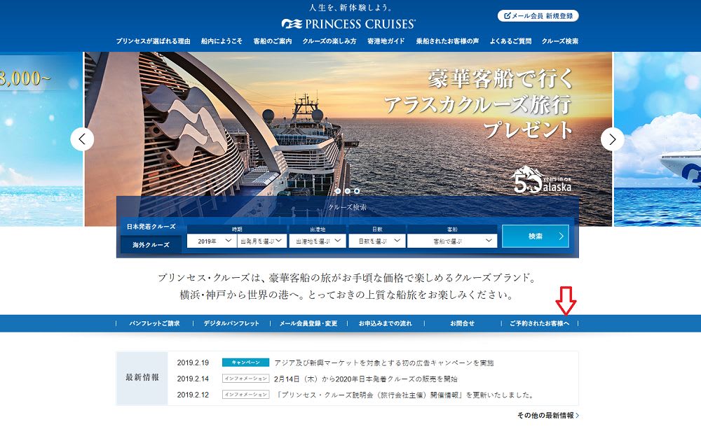 プリンセスクルーズのサイトでクルーズ・パーソナライザーを確認するとこちらも同じく違ってた。(乂`д´)