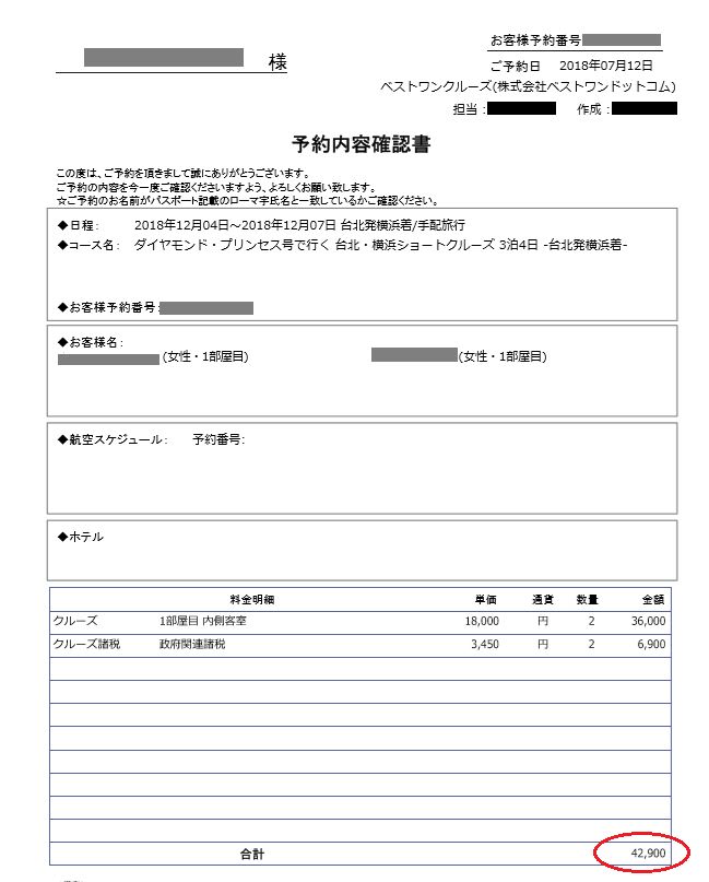 旅行会社スタッフ: 「確認できましたので減額の手続き取らせて頂きます。」