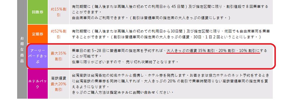 アーリーバードきっぷが買える、台湾高鐵のサイトはこちらです。