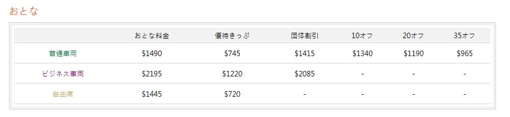 台北ー台南(自由:TWD1305/指定:TWD1350)や台北ー左營=高雄(自由:TWD1445/指定:TWD1490)なら往復するだけで元が取れますよ♪