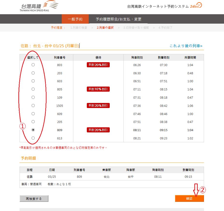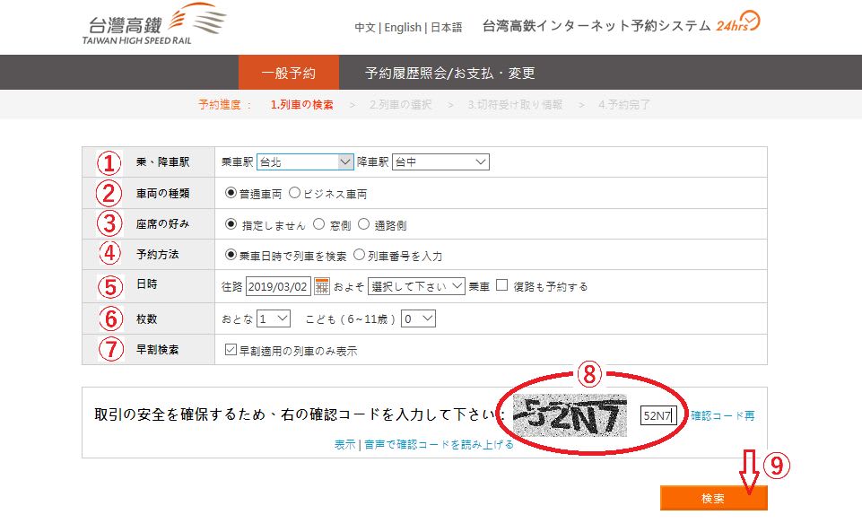 台湾高鐵のサイトは日本語の表示が選べるんです。(・∀・)イイ♪