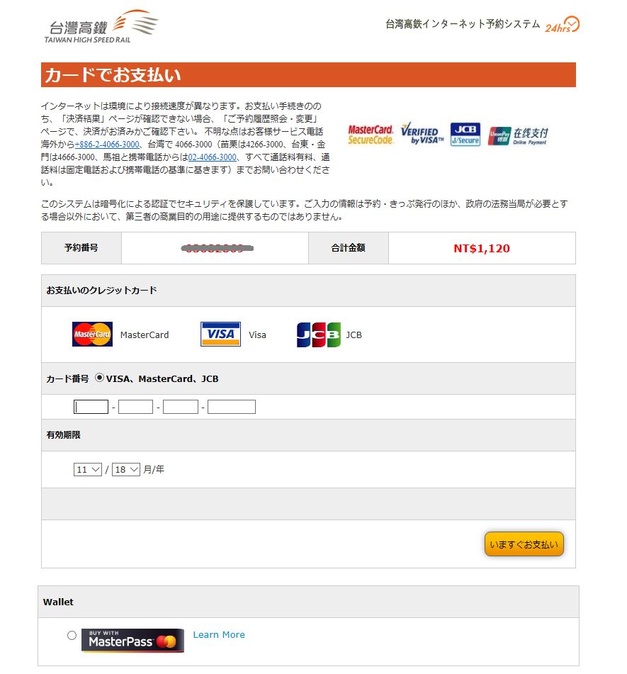 台湾高鐵の予約は、旅行前に日本でできちゃいます。(・∀・)イイネ♪