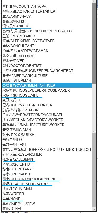 漢字もあるので分りやすいですが、かなり細かい職種に分かれています。