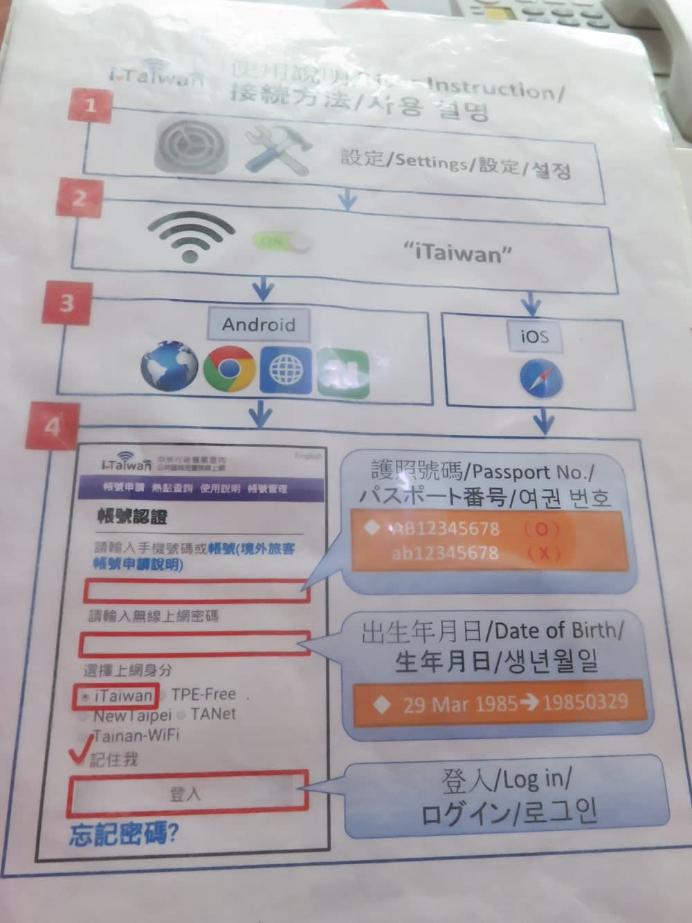 現地通貨を調達した後は、台湾全土で使える無料WIFIサービスi-Taiwanに接続します。