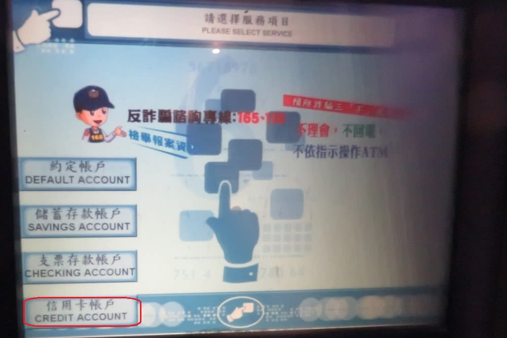 次にCREDIT ACCOUNTあるいは信用卡帳戶をρ(‘-‘* ) ホ゜チッと。