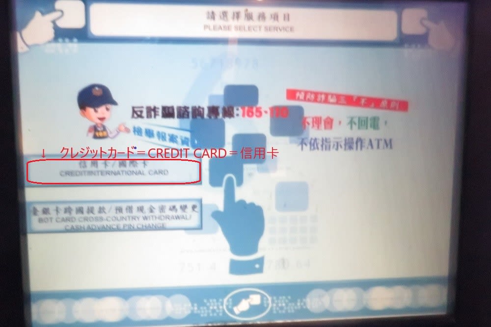 クレジットカードは中国語で信用卡なので、CREDIT CARDあるいは信用卡と書いてる方を選んで。