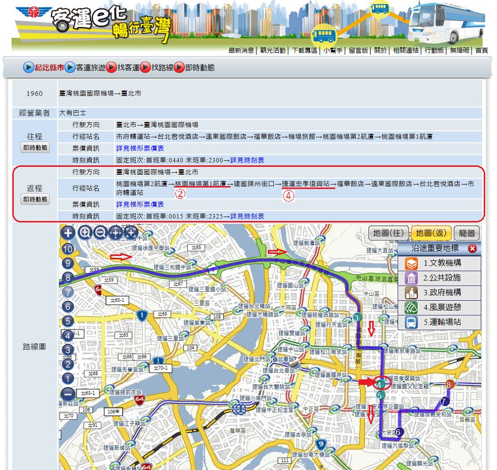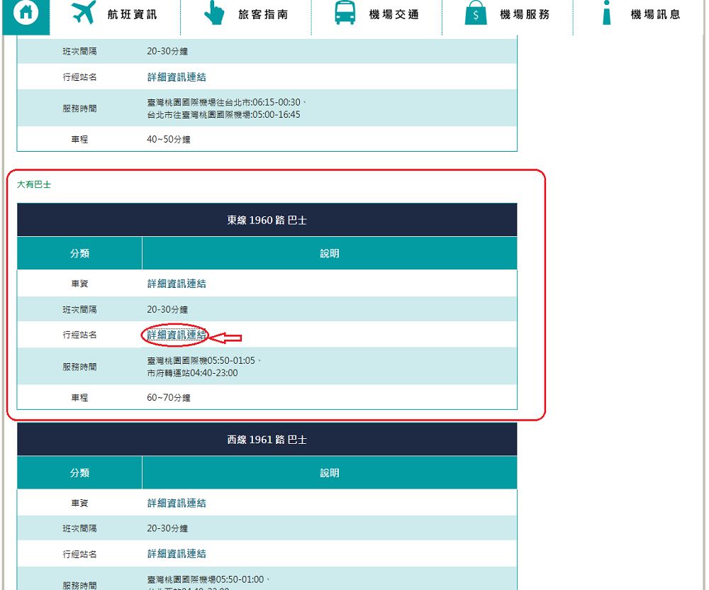 桃園空港のサイト→機場交通→公共運輸→客運巴士でこちらのページになります。