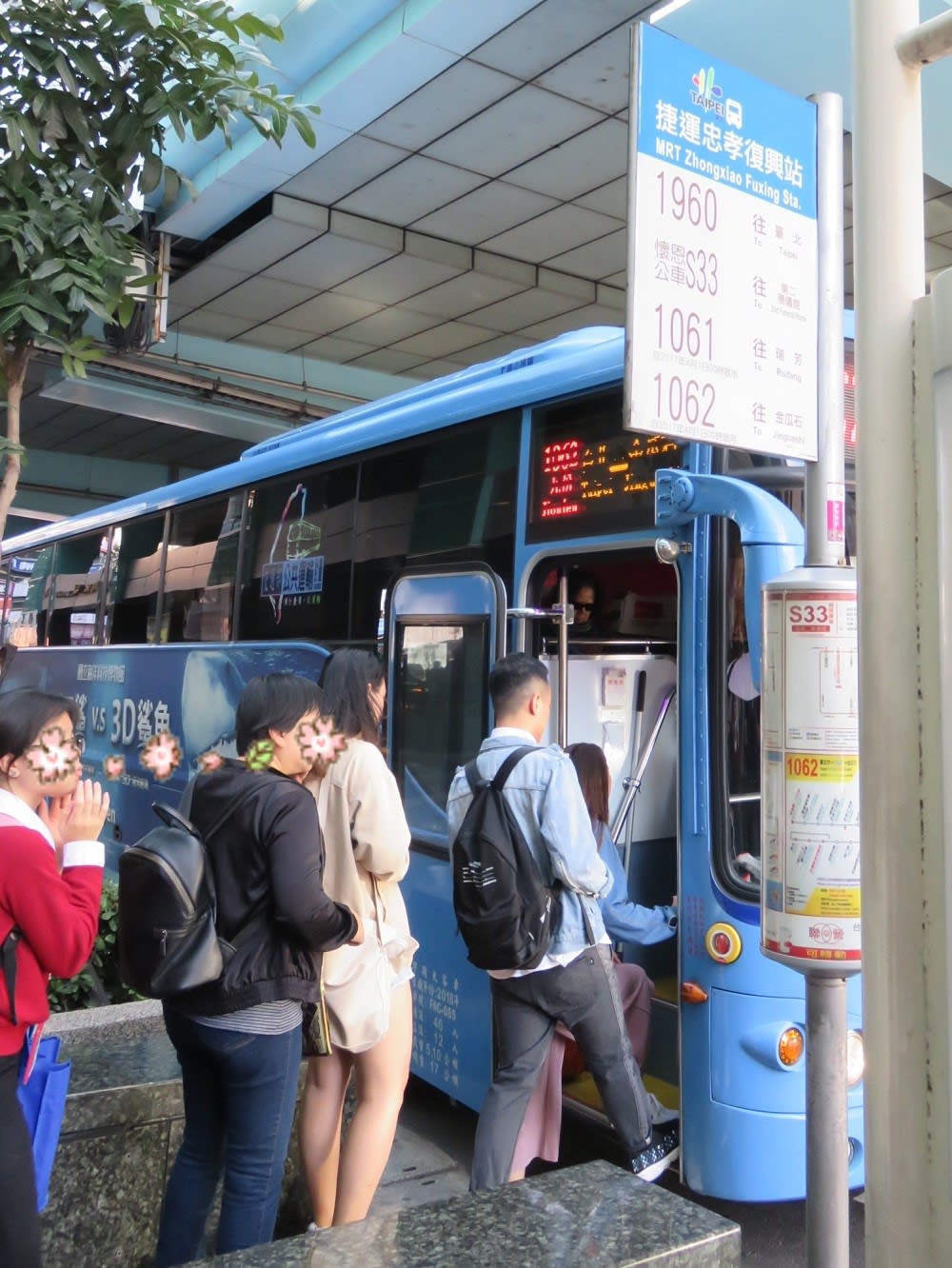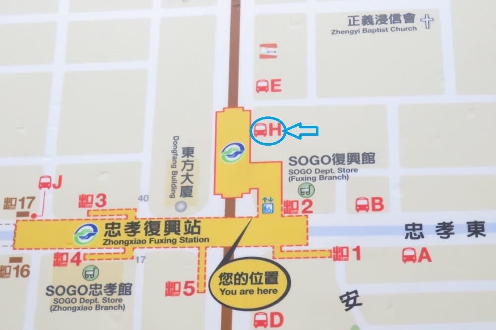 MRT忠孝復興駅のある、SOGO復興館の横にバス亭があります。