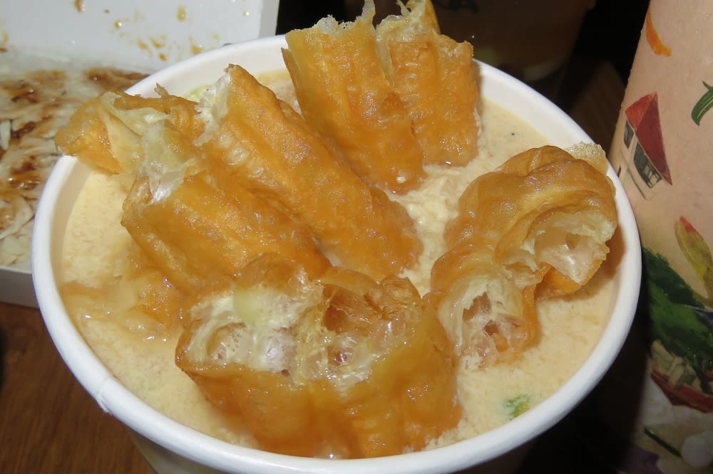 豆乳スープの鹹豆漿には、もともと油條が入っていたので。