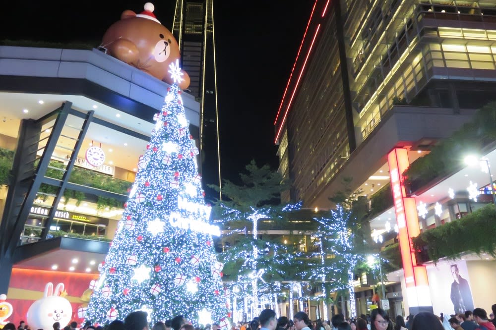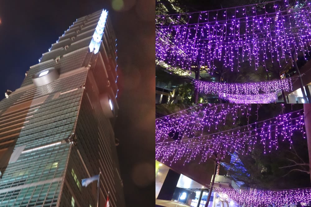 MRTの台北101駅に行く途中のイルミネーションと…。