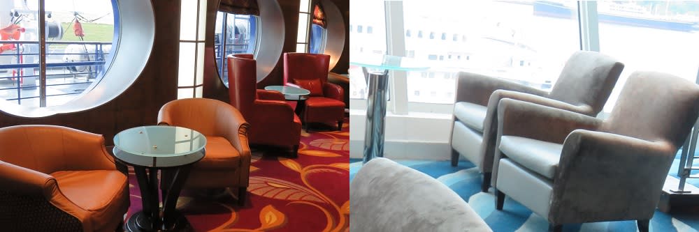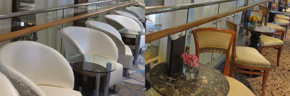 3F~5Fの船内中央にある、グランドフォイヤー(大階段)の吹抜け空間の横にあった椅子たち。