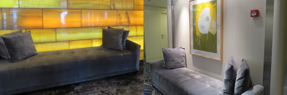 写真右下は、ショップエリアにあったソファーですが、ちょうど向かいに飾ってあるアートを鑑賞するのにも最適でした♪