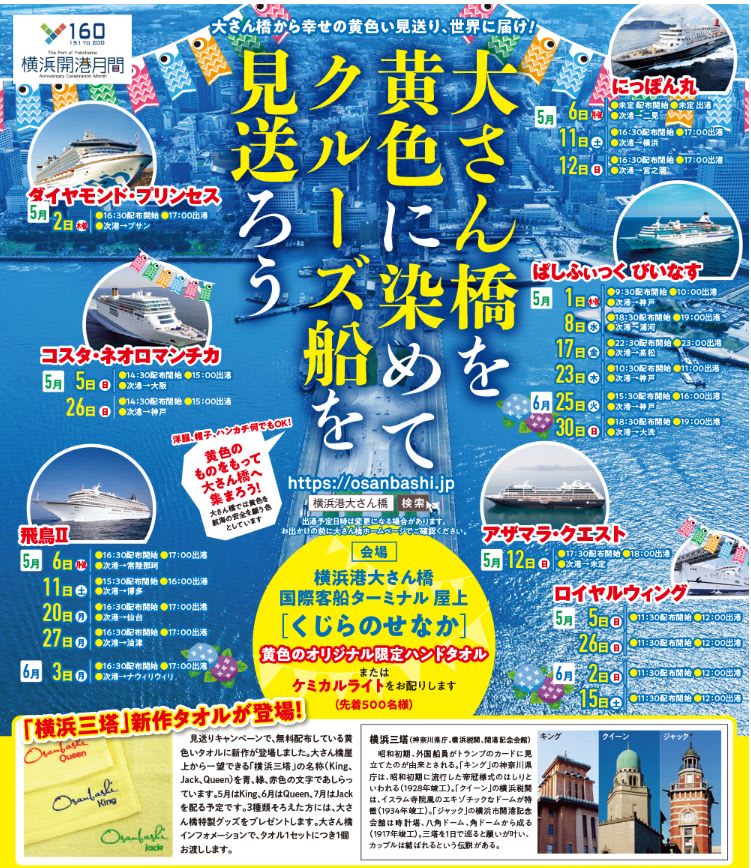 大さん橋国際客船ターミナルでは、定期的に『大さん橋を黄色に染めてクルーズ船を見送ろう』と言うイベントを開催しています。