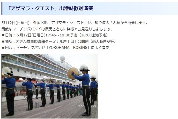 横浜港への客船の入港予定は、横浜市のサイトで確認しましょう。d(゜-^*)