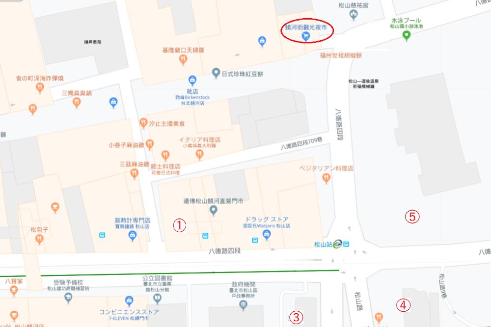 出口5番なら、外に出たら目の前に饒河街観光夜市がありますョ。d(゜-^*)
