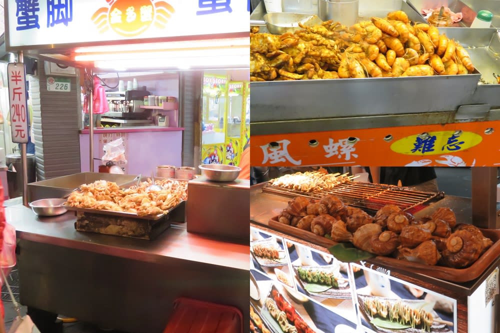 カニやエビ、貝などの屋台。