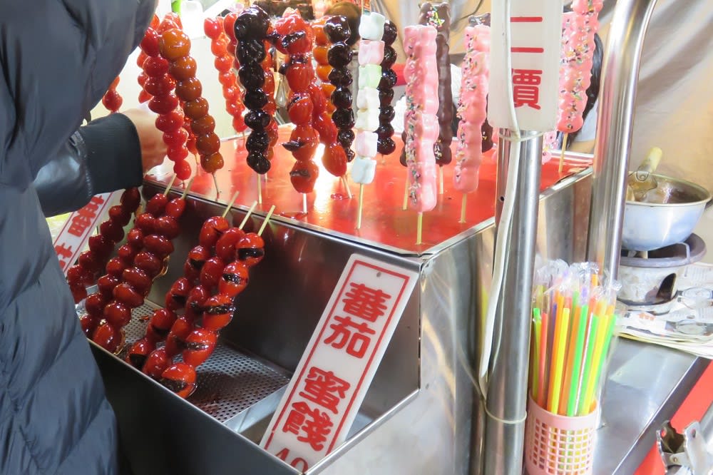 スイーツ屋台でよく見かけたのは、りんご飴ならぬトマト飴。