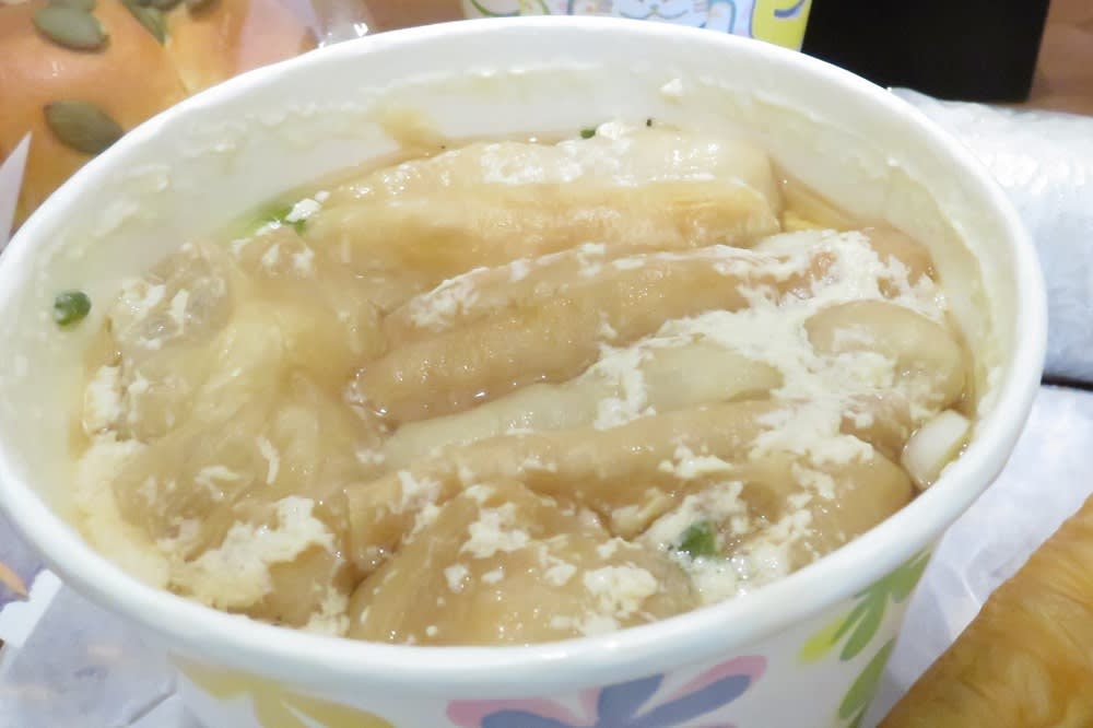 好福記永和豆漿の鹹豆漿は、底にザワークラウトみたいなのが沈んでて酸っぱい味付けでした。