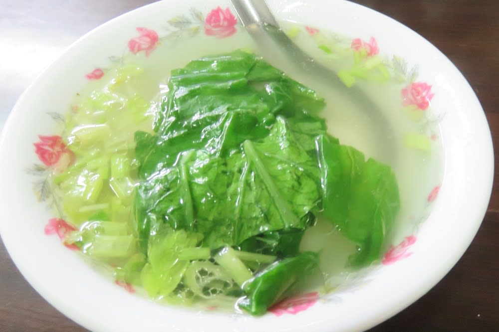 店先の屋台で、野菜などサッと湯がいて素早く調理していました。
