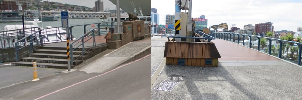 海洋廣場から向かうと、写真左のように片方が階段なのがわかります。