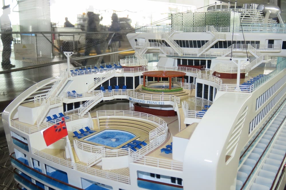 こちら、横浜港大さん橋国際客船ターミナルにあるダイヤモンドプリンセスの模型です。