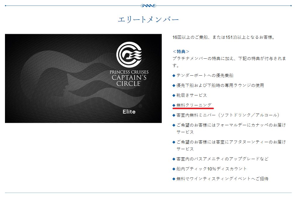 ダイヤモンドプリンセスならエリートメンバーはクリーニングの無料特典あり♪