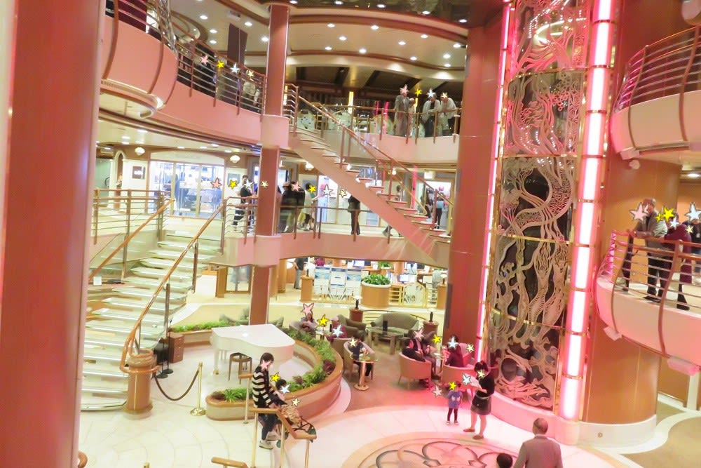 このアトリウムでは、航海中ピアノの生演奏など様々な催しが行われている賑やかな場所です。