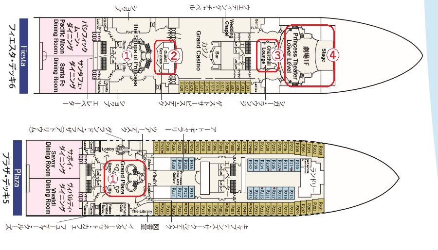 船内を探検しながら、プリンセスシアターのショーを見に行くことにしました♪