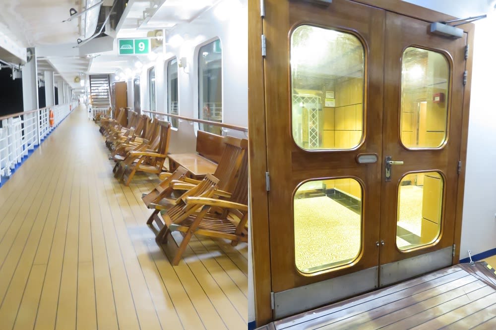 7Fの船内から外に出ると、デッキの名前にもなってる⑧プロムナードデッキがあります。