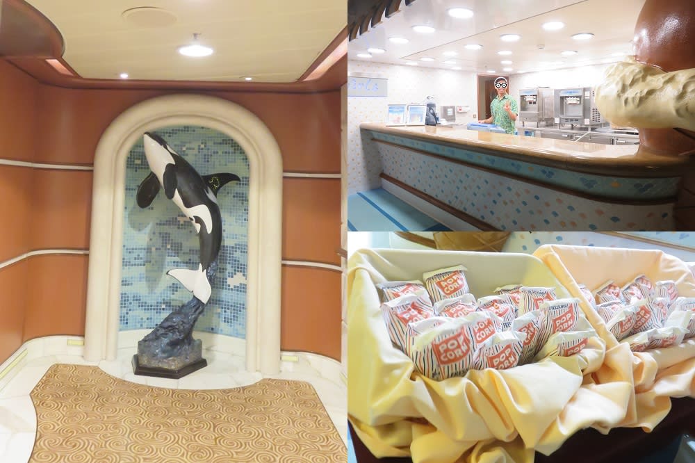 エレベーターの近くに⑨アイスクリームバーがあって、その近くにはポップコーンも用意されてました。