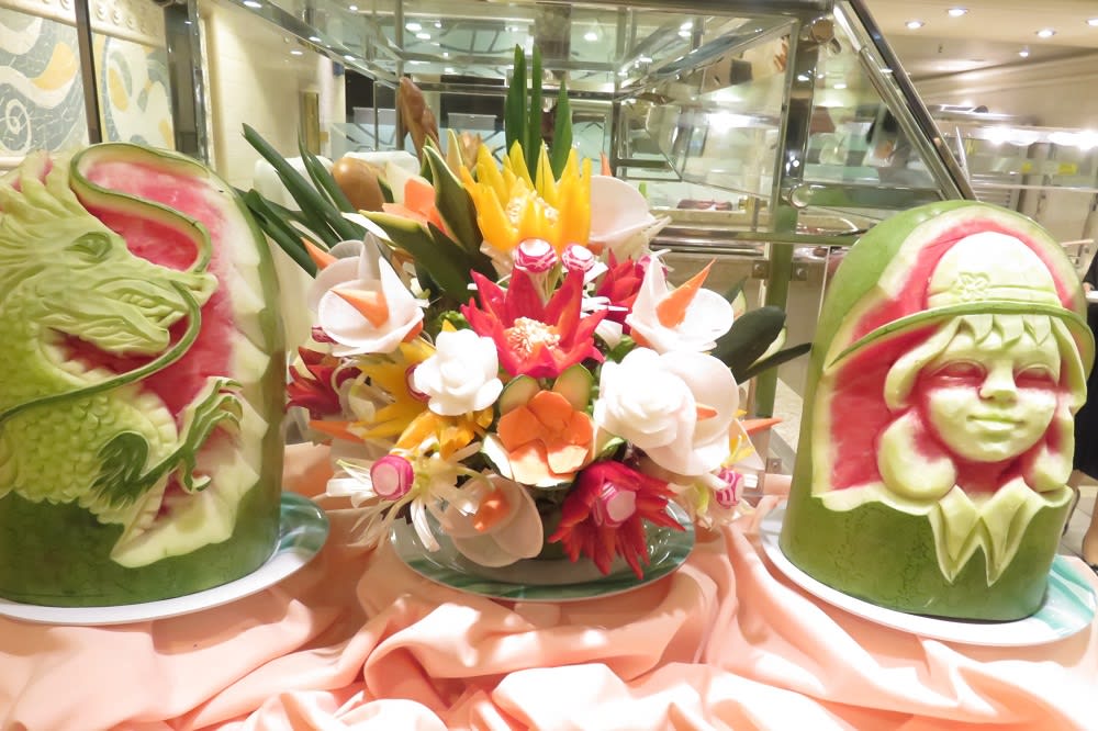 またまた来ましたホライゾンコート。フルーツカービングがお出迎え♪