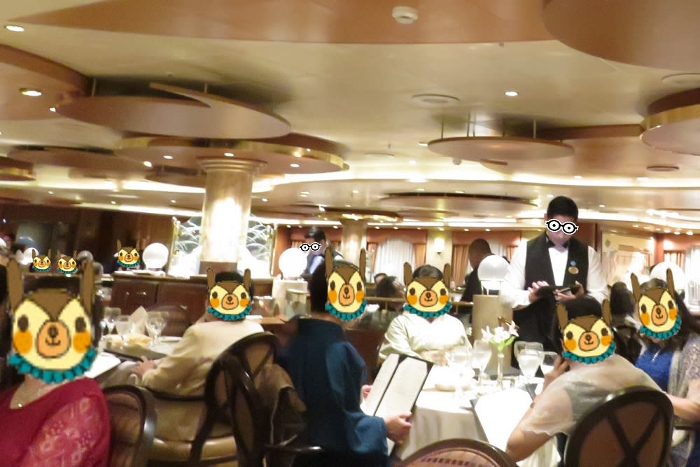 ダイヤモンドプリンセスのフォーマルナイトのダイニングの様子です。