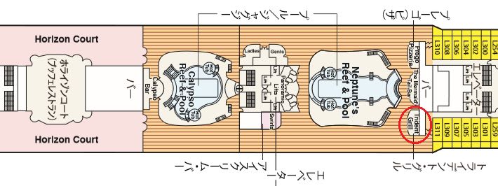 トライデントグリルは、ホライゾンコートと同じくリドデッキ・14Fにあります。