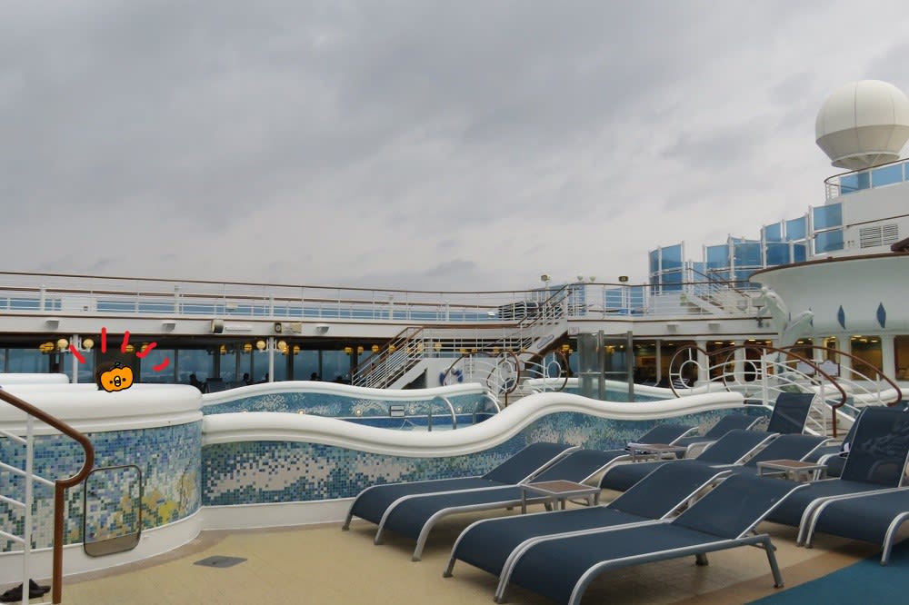 ダイヤモンドプリンセスのプールとジャグジーの場所です。