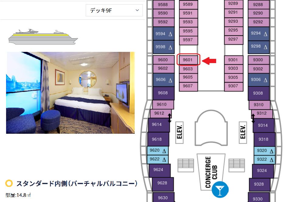 日本語公式サイトから予約③~自分で客室が選べるョ♪~内側客室・バーチャルバルコニー