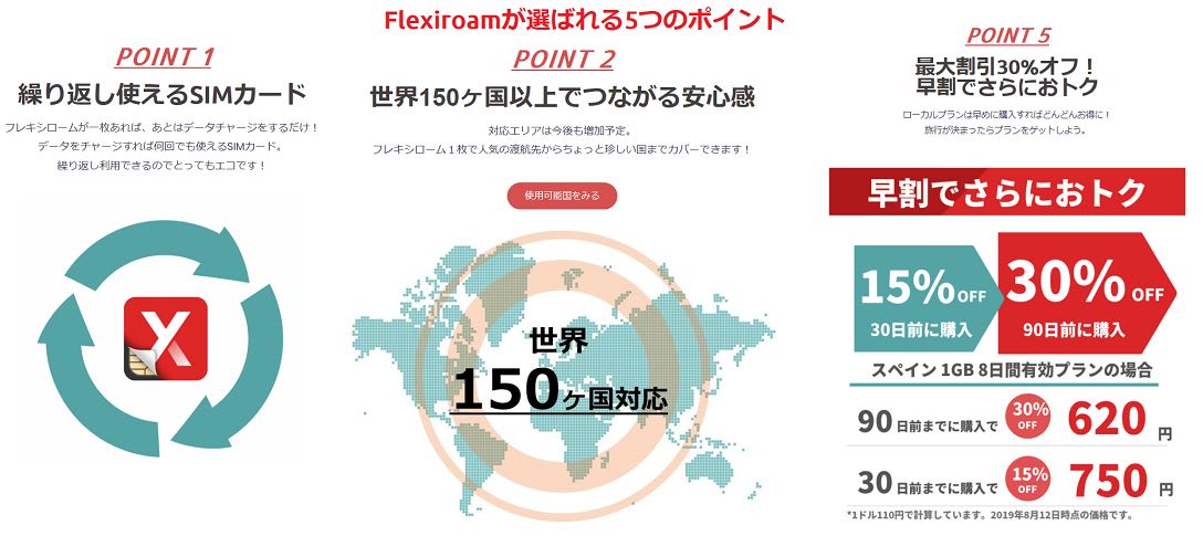 FLEXIROAM フレキシローム|世界150カ国でネットがつながる格安トラベルSIM