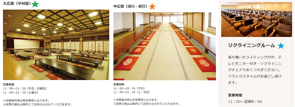 大広間・中広間は、営業時間外の夜間は男女別の仮眠室になっていました。