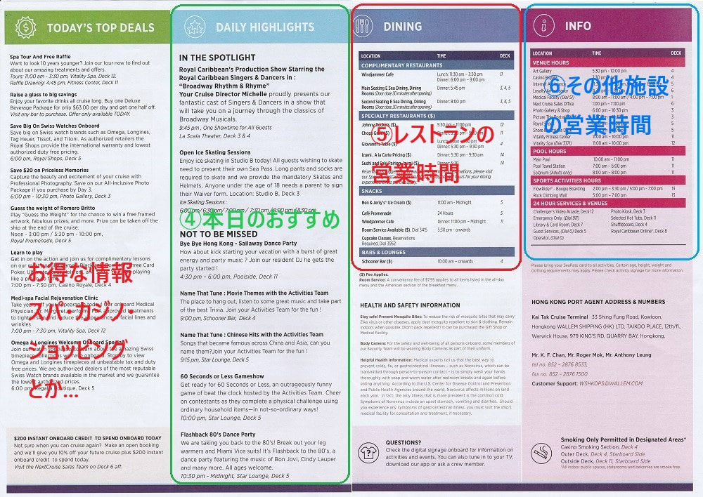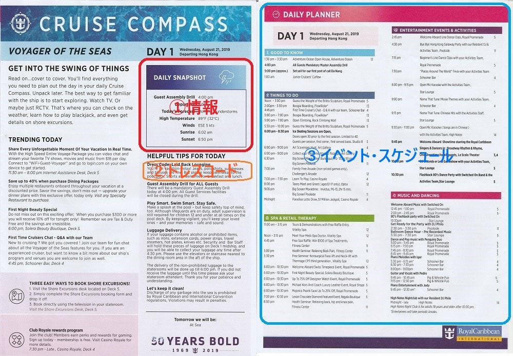 ボイジャーオブザシーズの船内新聞(英語版)の見方《旅の話題~クルーズ編》
