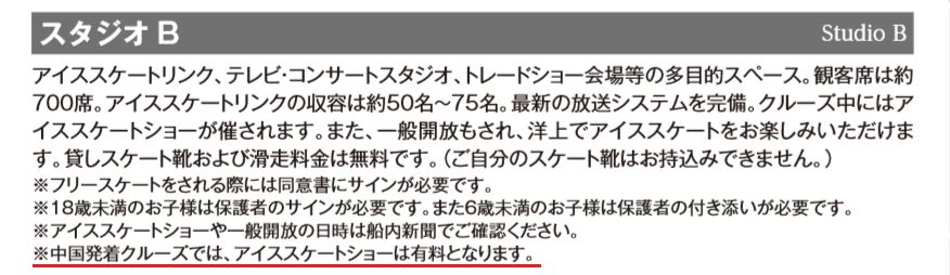 中国発着クルーズではアイススケートショーは有料となります。
