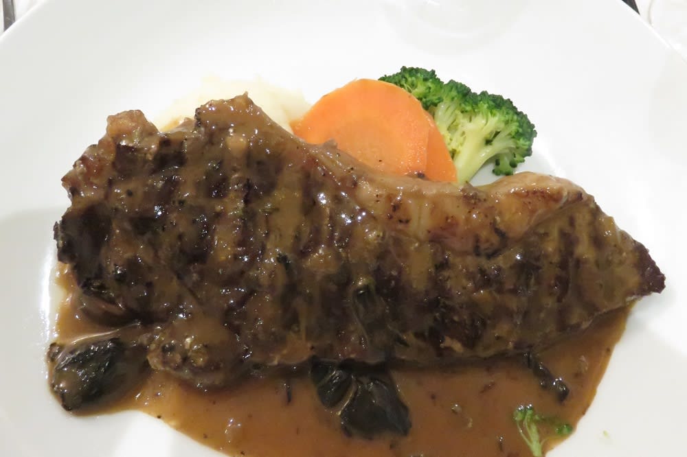 クルーズ船のメインダイニングで食べる無料のステーキは、ちょっと噛み応えあるイメージでしたが…。