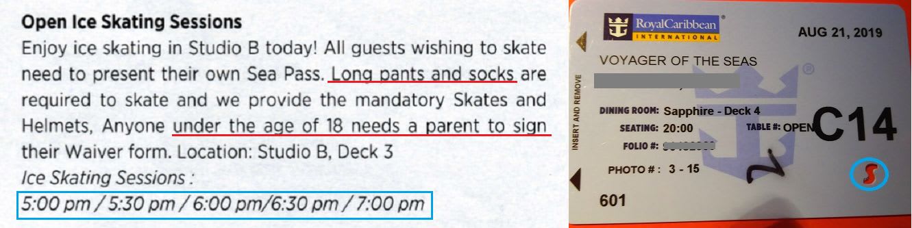 開催:4泊のクルーズ中、アイススケート場が解放されたのは2日。各5~6回