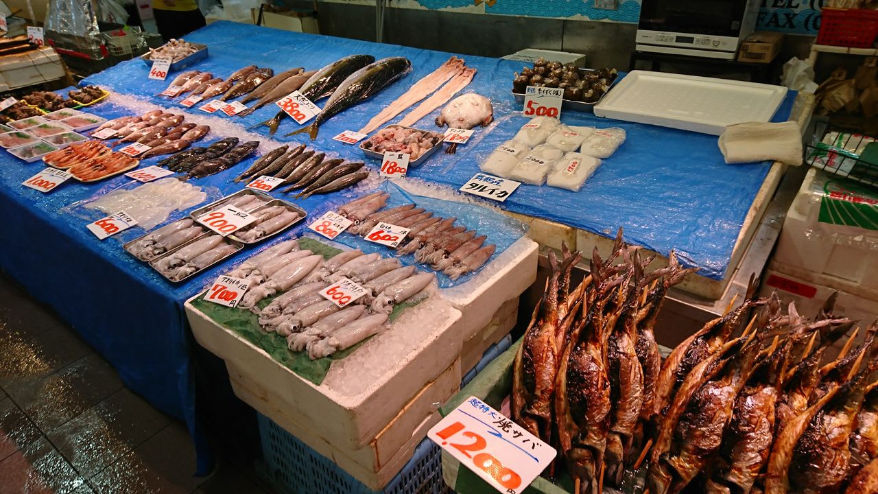 まだ朝早いので、観光客はほとんどいませんでしたが、店先に並ぶ新鮮な海の幸は見ているだけで旅のわくわくを増幅させてくれます。