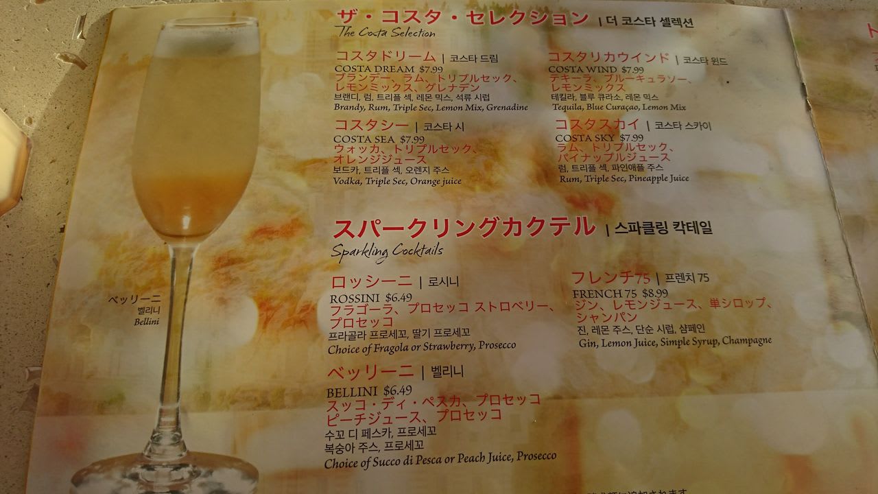 コスタ・ネオロマンチカ乗船記~その10~船内バードリンクメニュー大公開