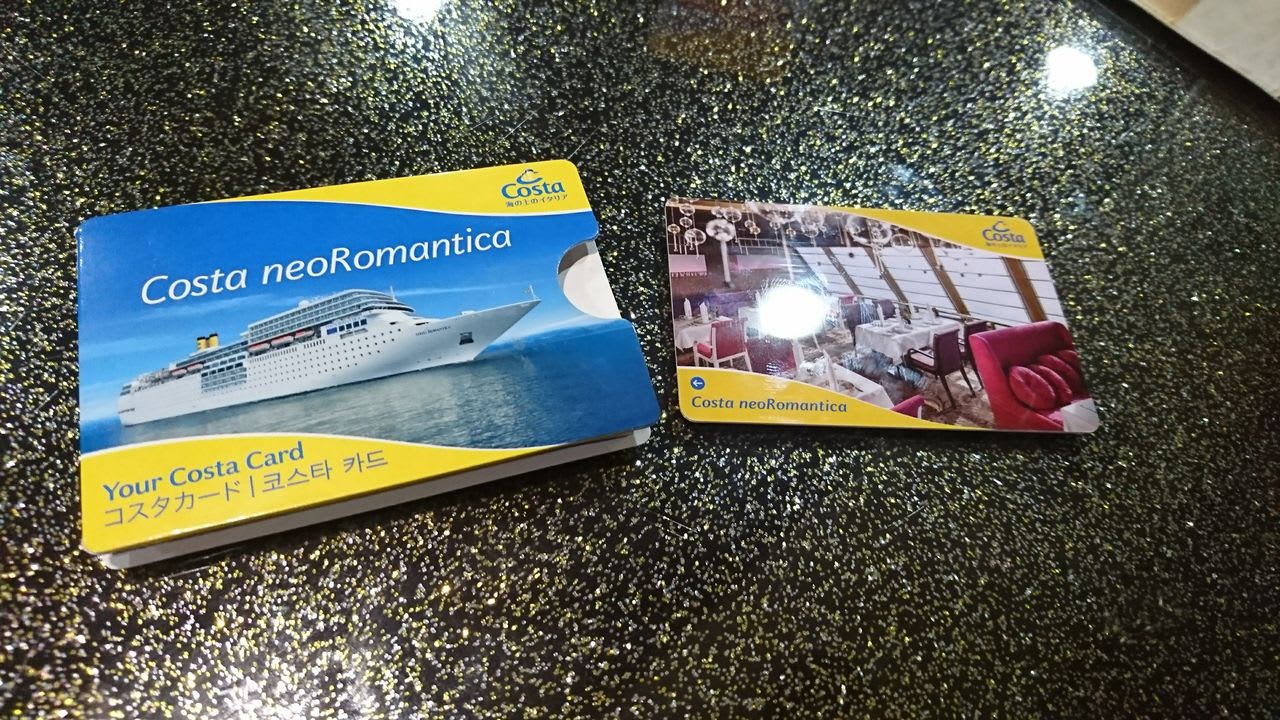 コスタ・カードは乗船するときにもらえるもので、クルーズ中の身分証明・お会計等に使うものです。